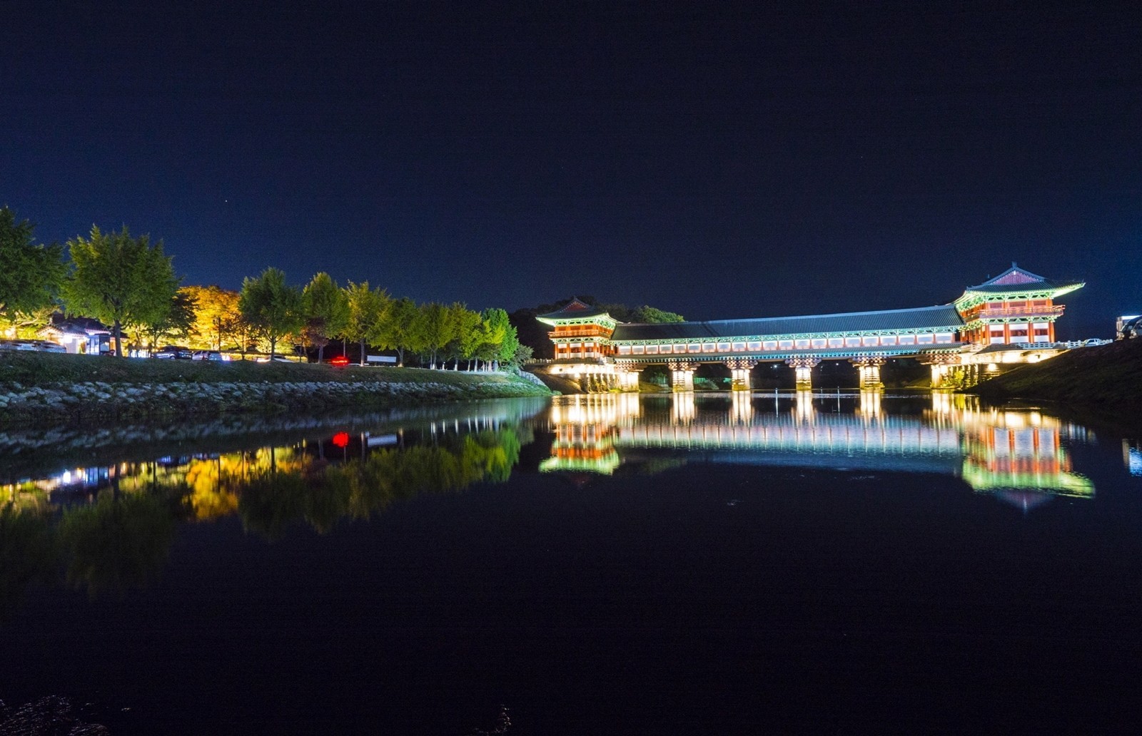 최근 완공되어 경주의 야경 명소로 떠오르는 곳! 수면에 비친 월정교의 풍경이 참 아름다운 곳입니다.