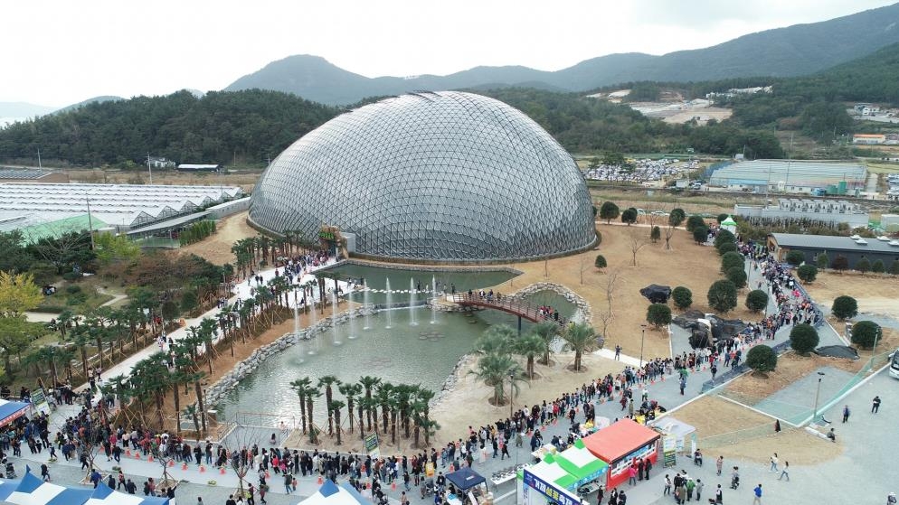 거제시 거제 남서로번지에 위치해요. 이곳은 국내 최대 규모의 식물원 정글 돔이 있는데, 4,400 제곱미터 이상의 면적이며 최대 높이가 약 30 미터인데요. 돔 내부에는300여 종 열대수목이 있다고 해요. 이곳의 천장은 유리로 되어 있어 하늘이 또렷하게 보이고 사용된 유리만 7,400장이 넘습니다.
