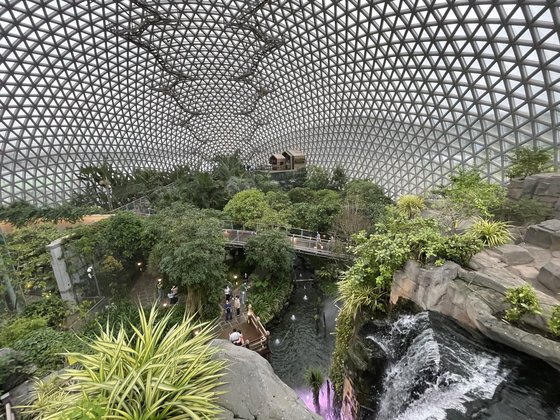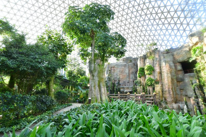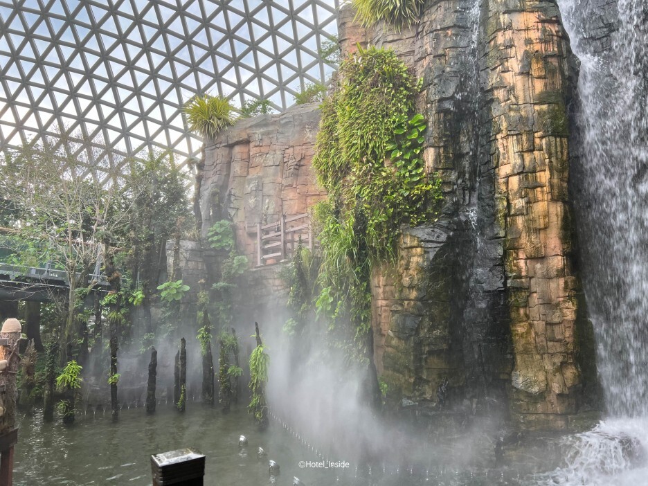 내부에는 여러 가지 열대 식물이 있으며 이동 경로를 따라가다 보면 온갖 식물을 볼 수 있어요. 정글돔 규모가 외부에서 보는 것처럼 크지는 않았고 20~30분 정도면 충분히 한 바퀴 돌 수 있는 규모인데요.