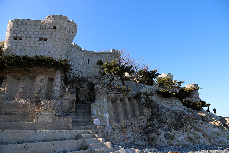 기억하는 분들도 계실 텐데,약20여 년 전, 2003년 초가을 시즌 아마 추석 연휴 막바지였던 것 같은데, 강한 태풍이었던 ‘매미’가 한반도를 휩쓸고 지나갈 때 특히나 부산을 비롯해 동남권 해안 지역들이 큰 피해를 입게 되었어요. 이 때 해안가 근처 경작지를 태풍 때문에 모두 잃게 된 백순삼 씨가 추후 자연재해로부터 경작지와 작물을 지키기 위해 오랜 시간 동안 홀로 쌓아 올리게 되면서 지금의 모습을 갖추게 된 것이라고 해요. 처음엔 돌 하나둘씩 쌓던 것이 지금은 거의 견고한 요새처럼 만들어진 모습이 되었어요. 성벽 중간쯤에는 마치 동굴처럼 이어진 길이 나오는데,