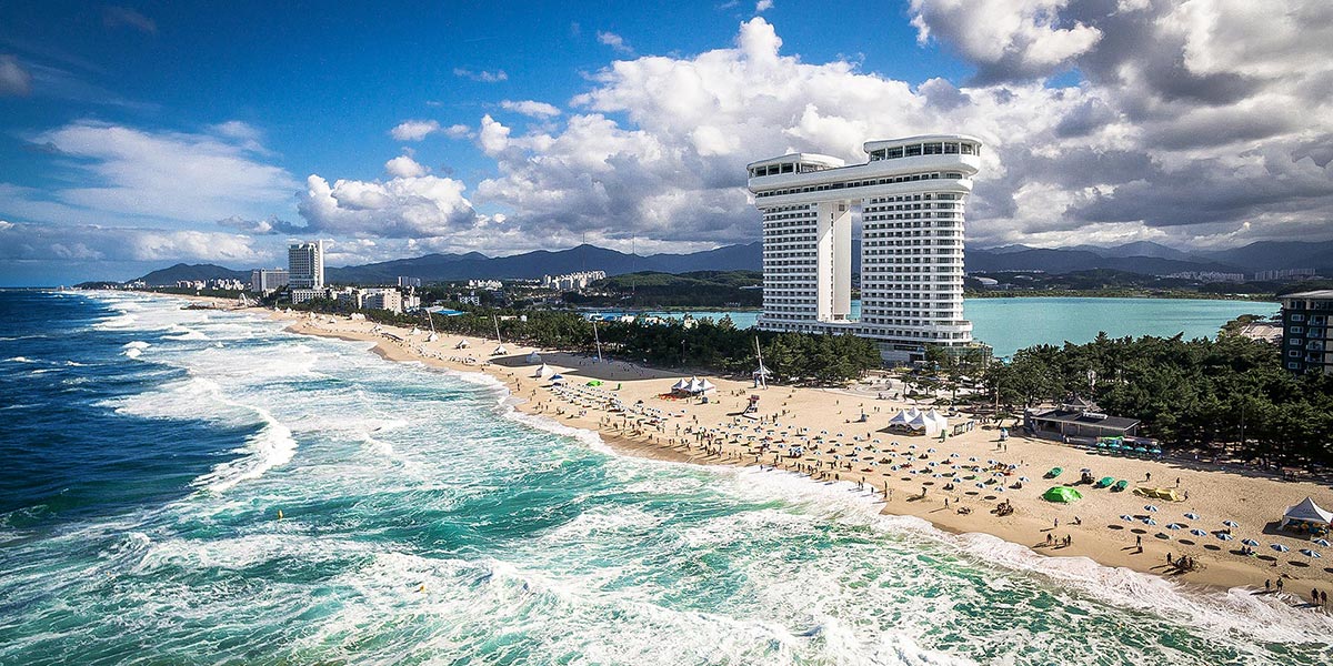 전국에서 해수욕장으로 손꼽히는 곳 중 하나인 경포해변이다. 봄부터 겨울까지 사계절 관광지이다. 경포대 해수욕장은 전국을 대표하는 해수욕장입니다.