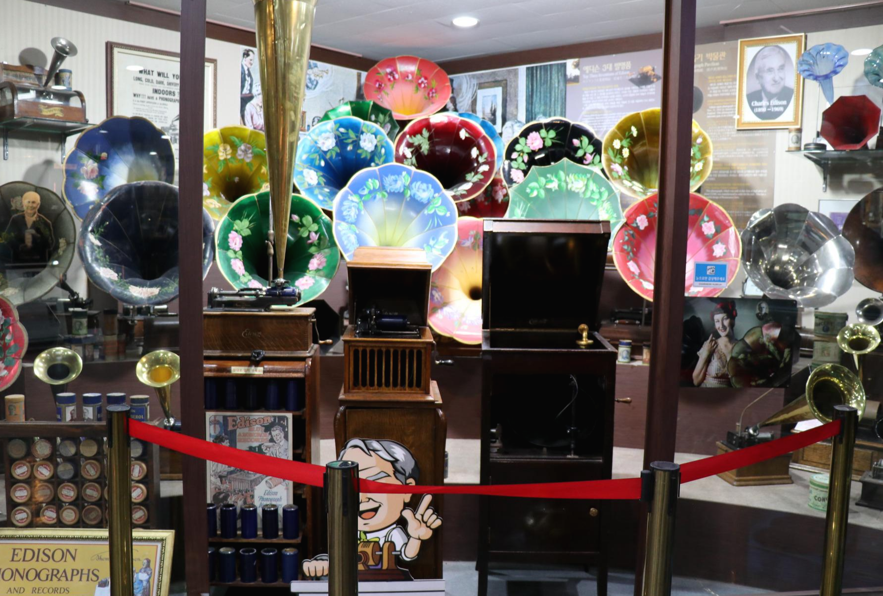 참소리 축음기 박물관으로 불리기도 하는 에디슨 과학박물관에는 크고 작은 축음기를 비롯해 에디슨의 온갖 발명품이 총정리되어 있습니다. 축음기란 음성을 기록하고 재생하는 장치를 말하는데 에디슨이 최초로 발명했다고 합니다.