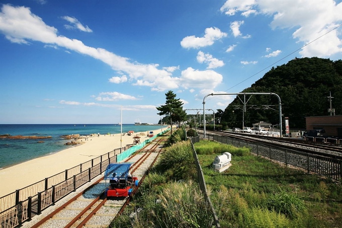 정동진역은 작은 기차역이고 바다가 보이는 해돋이를 볼 수 있는 기차역은 이다. 레일바이크는 20~25분 정도 소요가 되며 4.6Km라는 거리이다. 동해바다와 함께 달리는 레일 바이크 정동진에 간다면 한 번쯤 타보는 것을 꼭 추천드린다.