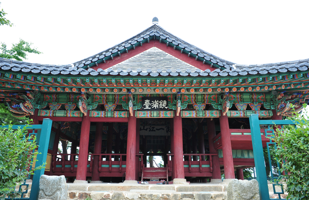 8자 모양의 팔작지붕은 48개로 이루어진 기둥 모양을 하고 있습니다. 마루의 높이를 자세히 보면 모두 다른 모양을 가지고 있음을 알 수 있습니다. 경포해수욕장도 경포대와 매우 가깝기 때문에 두 코스를 차례로 둘러보는 것을 추천드립니다.